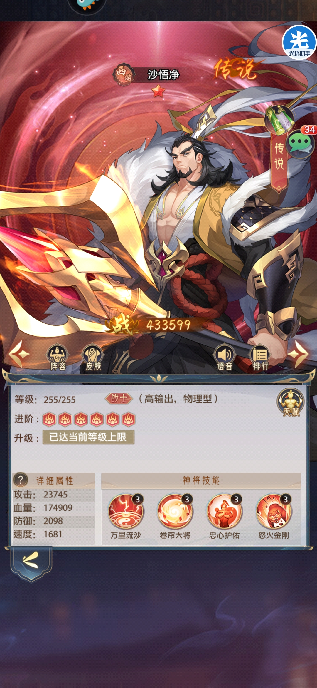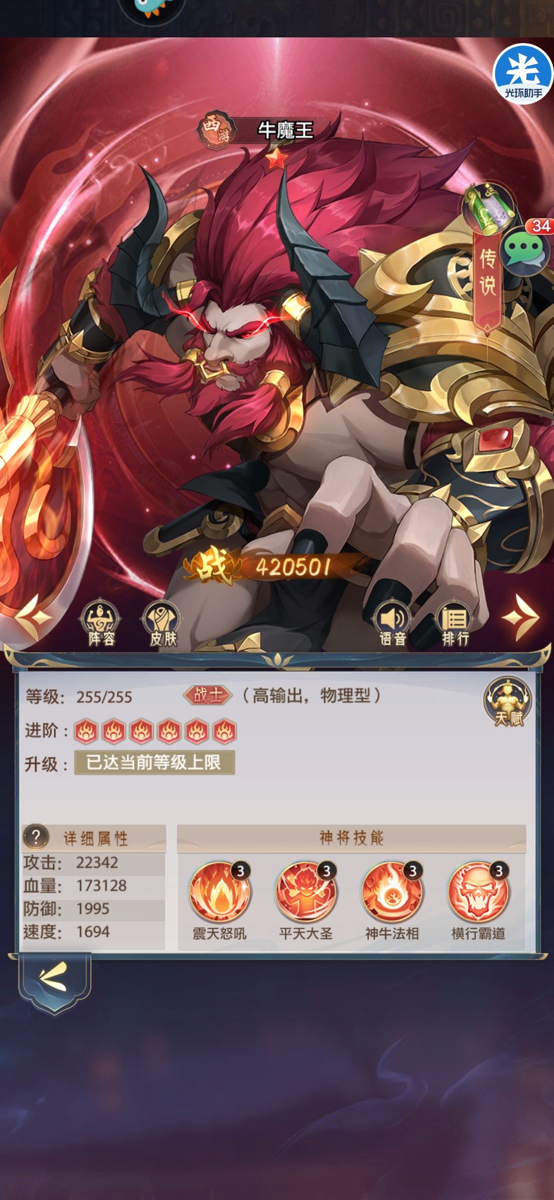 简单粗暴的技能机制,以高额攻击+暴击率+暴击伤害+无视防御等多重输出机制叠加,保证自身极致爆发伤害,且前期升星相对容易,可以作为过渡武将培养,但美中不足是牛魔王优先攻击前排,如果敌方前排坦度较高则很容易被反打