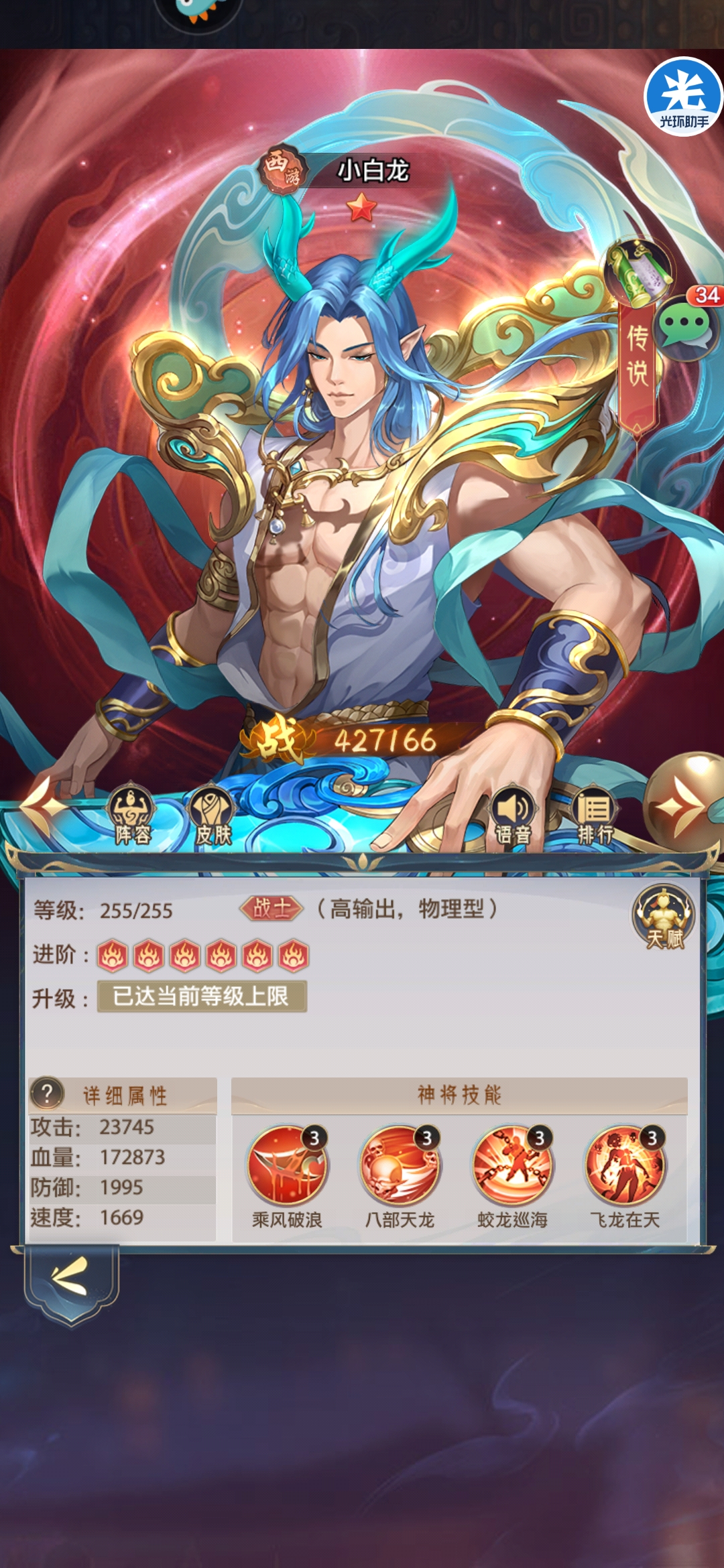 西游毒控阵容核心,全体输出模式配合高概率淬毒效果可以搭配太上老君打控制,同时小白龙自身攻击概率附带控制效果,控场能力较强,如果没有太上老君,小白龙不建议上阵,单独上阵横向对比优势并不大
