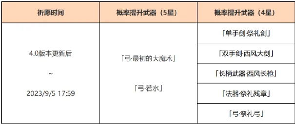 这次的四星武器均为充能向武器,除了祭礼残章副词缀为元素精通以外,其余武器副词缀均为元素充能效率。