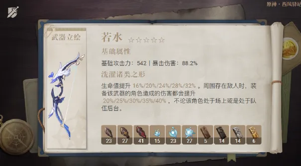 装备评价:高权重“暴击伤害”以及较为稳定的全伤加成,使得该武器在弓系武器里有着较高的的地位,无论哪位输出向弓系角色,佩戴该武器都有着不错的输出效果。
