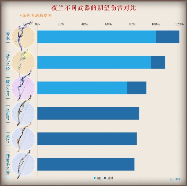 装备评价:该武器虽有重击特化的倾向,但能根据队伍搭配有稳定的攻击力加成,加上其标准的608白值与暴击伤害副词缀,即使是不用重击输出的副C类弓系角色也可以考虑使用。当然,最大的适用角色自然是用重击输出的角色了。