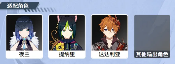 「夜兰」:撇开加成不看,由于速度加成能提高夜兰疾走的速度,是大世界跑图组合神器。