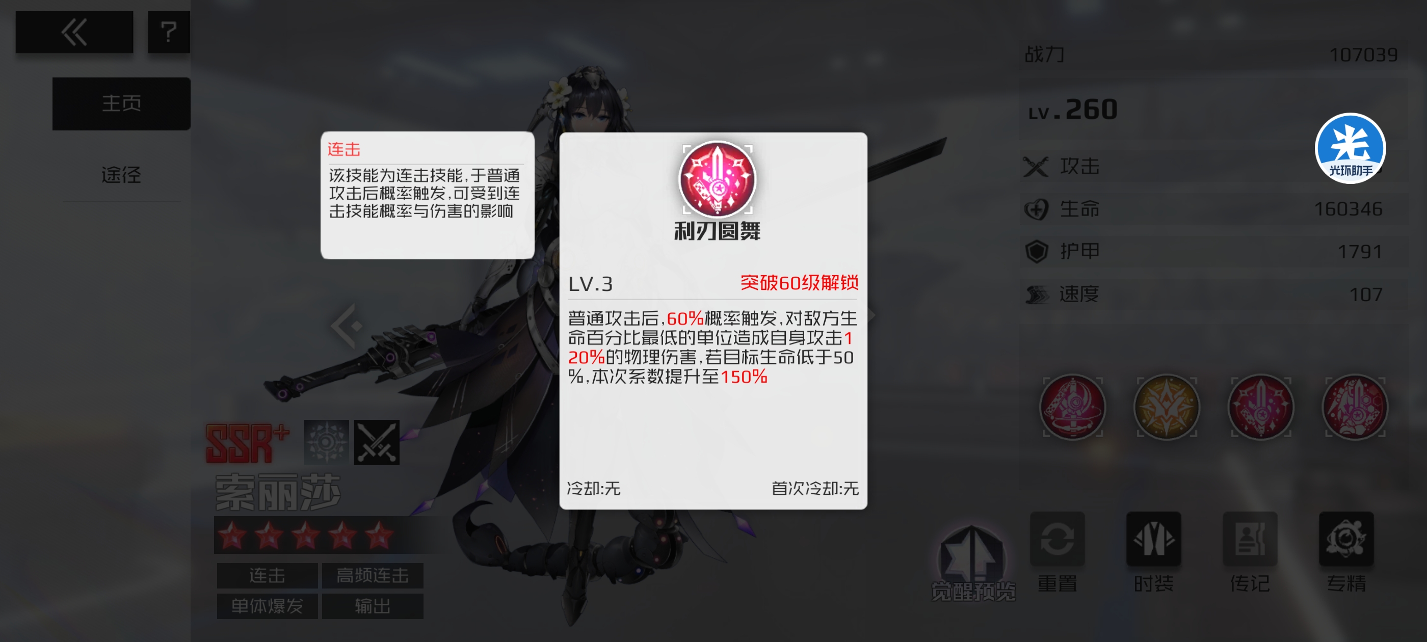是绝舞连击队的核心,不过怎么说呢这个队局限性有点大,基本上都是奔着秒人去的,输出都是单体,这会导致在某些时候可能发挥的效果并不好,不过PVP倒是一把好手。而且怎么说这个角色简称没技能,全靠连击,所有技能都是属于无冷却的情况,怎么说有点看脸60%概率,不过打出来效果就非常好。
