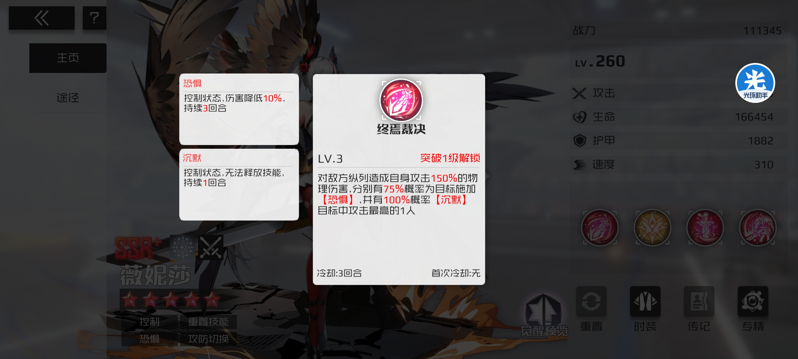 虚光渡控队后期大主c为德妮莎,首先是终焉裁决可以提供稳定的控制,让对面攻击最高的人被沉默,这也导致玩毒控队速度要快。然后就是三技能可以重置冷却,同意样的是配合四技能进行,都是针对攻击最高的敌人,虽然只有75%概率可以重置,不过只要脸好就可以。