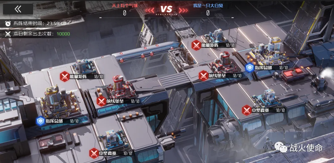 ◆ 划重点!双方军团在进入战场后,会获得前线堡垒、能量矩阵、中坚要塞和指挥总部四个军团建筑。每个军团建筑内,会包含9个指挥据点和1个中心EX,双方军团配置是一样的。