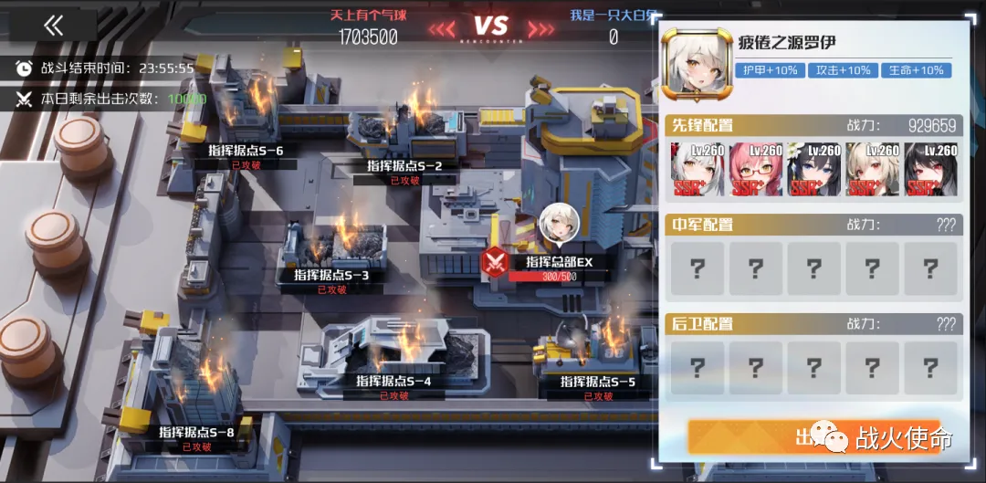 ◆ 当对敌方据点进行出击,且击败驻守中的任意2队星灵,即完成对该据点攻陷,并获得积分,同时消耗1次进攻机会。每位长官仅有10次出击机会,请妥善利用。