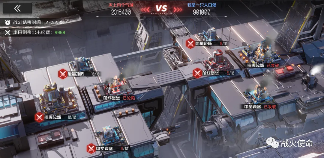 如果选择直接攻击军团指挥总部,在攻陷后『军团会战』也不会立即结束,需要攻陷剩余其他建筑,才能进行战场积分结算。