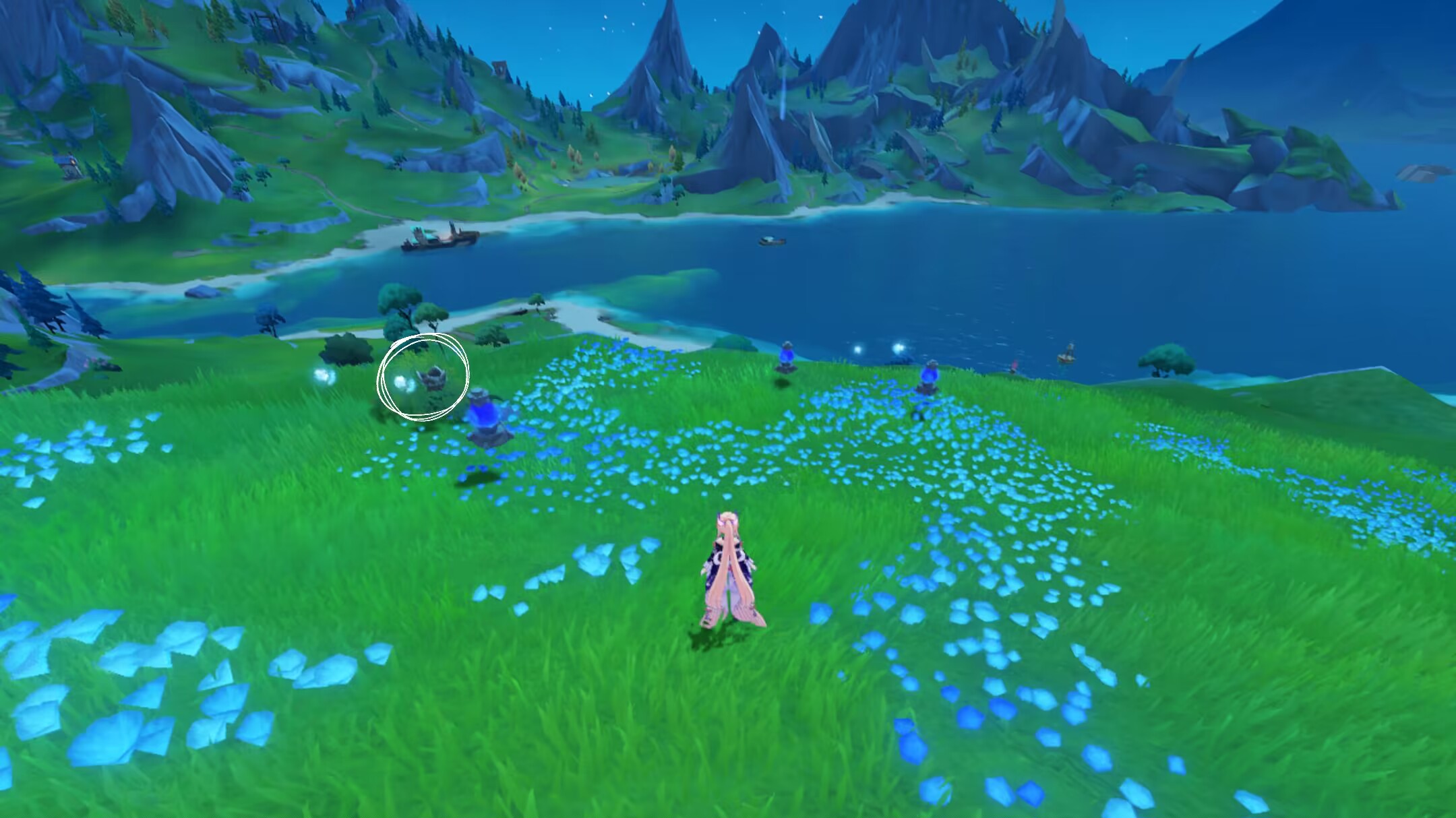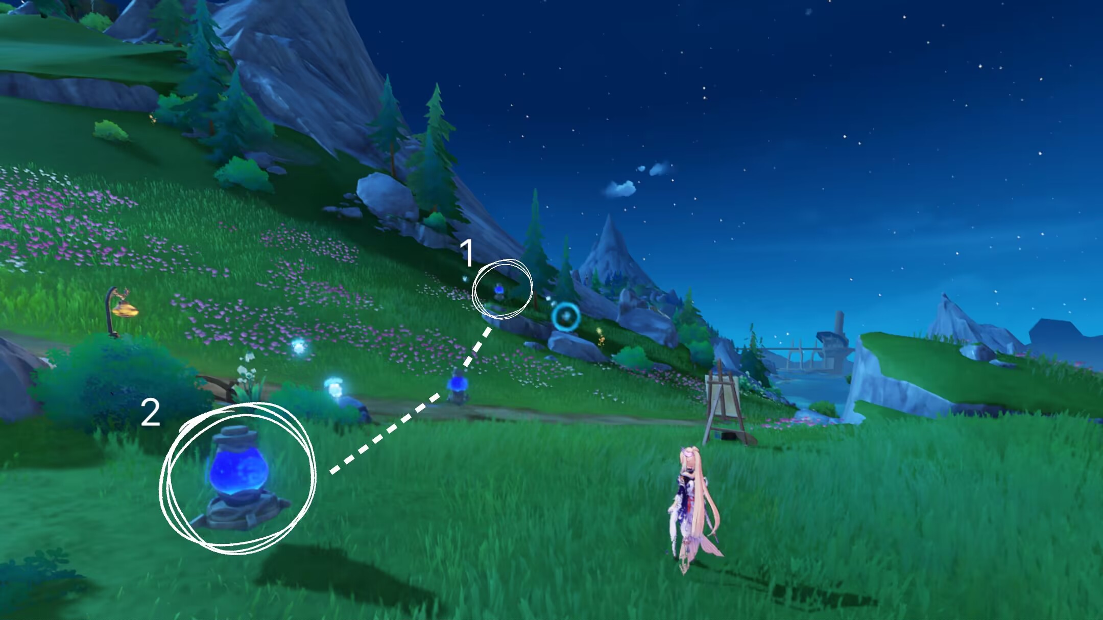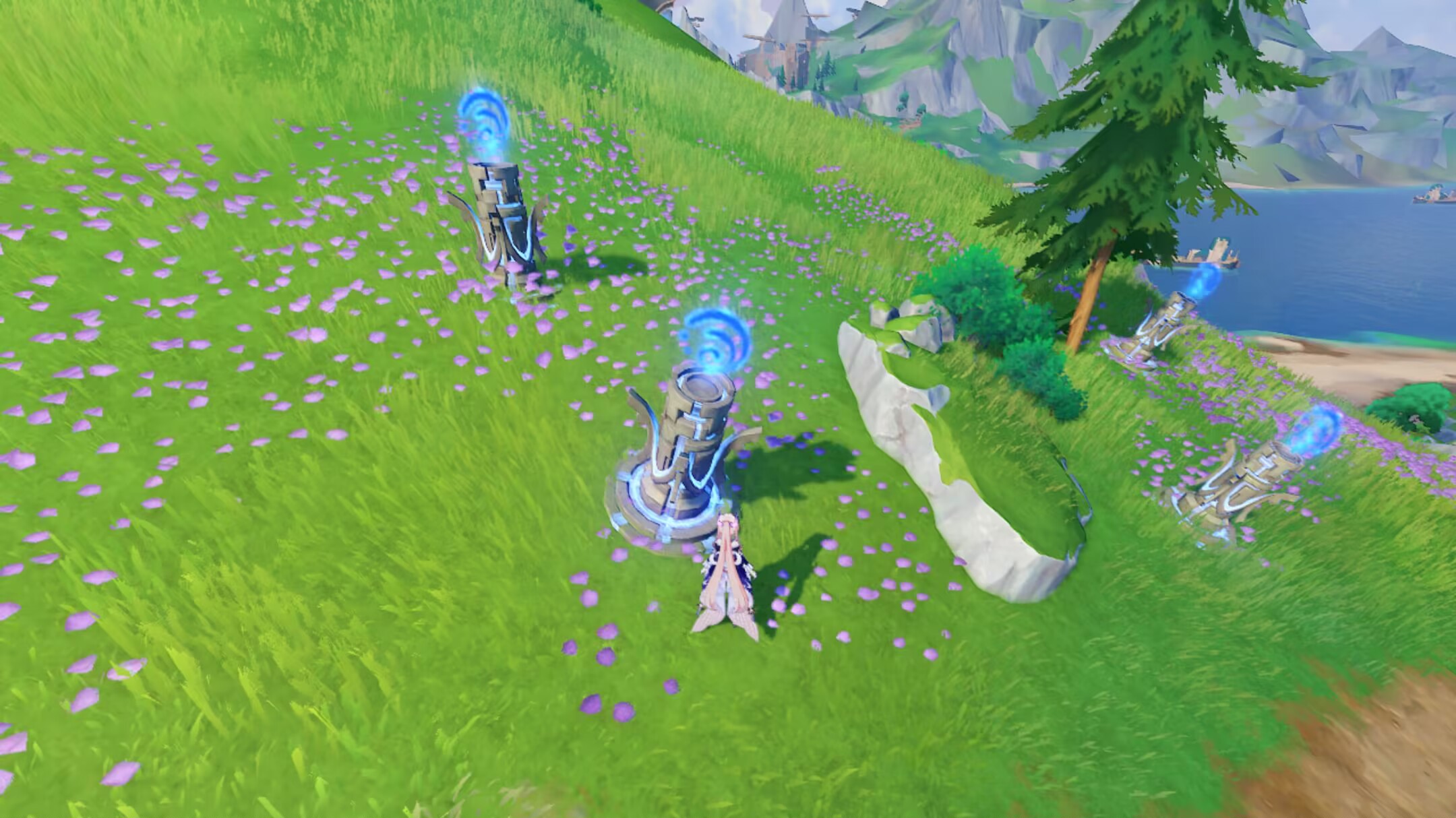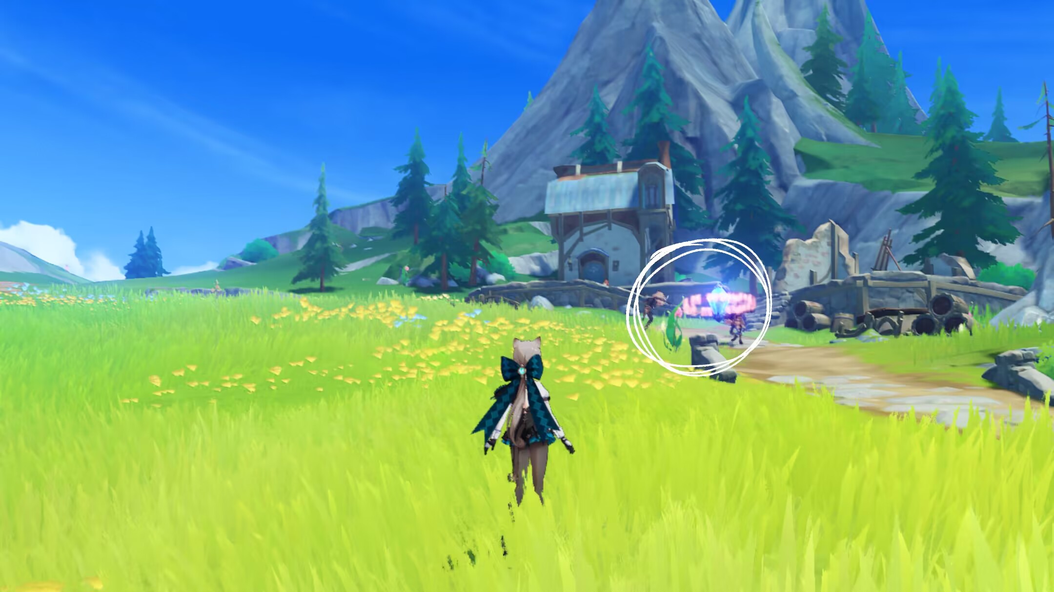 使用(风元素)角色攻击风车,吃完颗粒开启宝箱触发任务