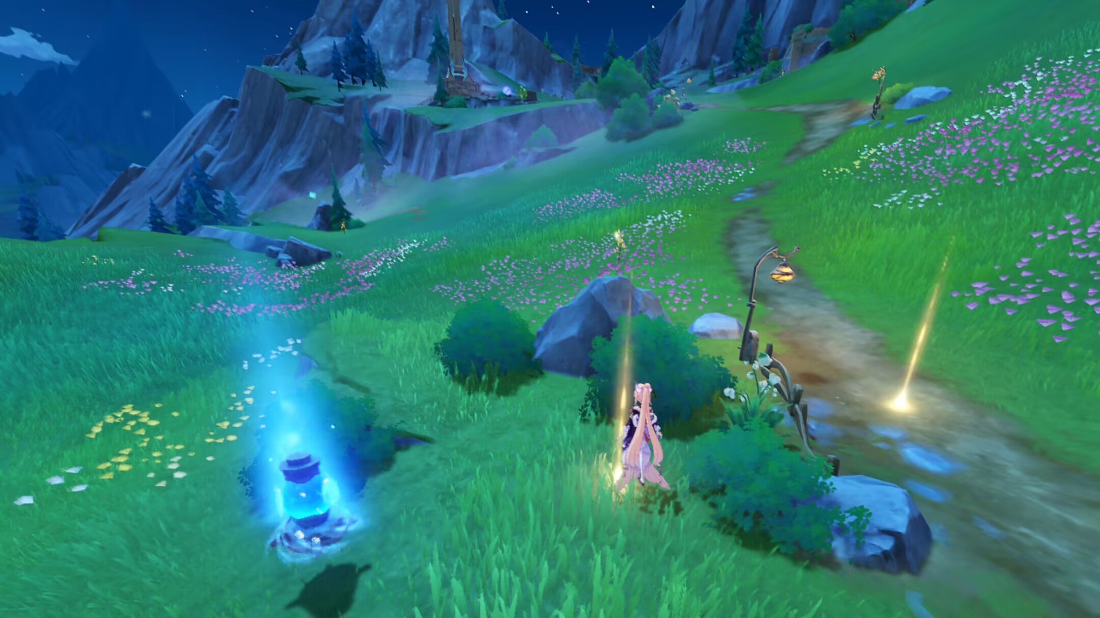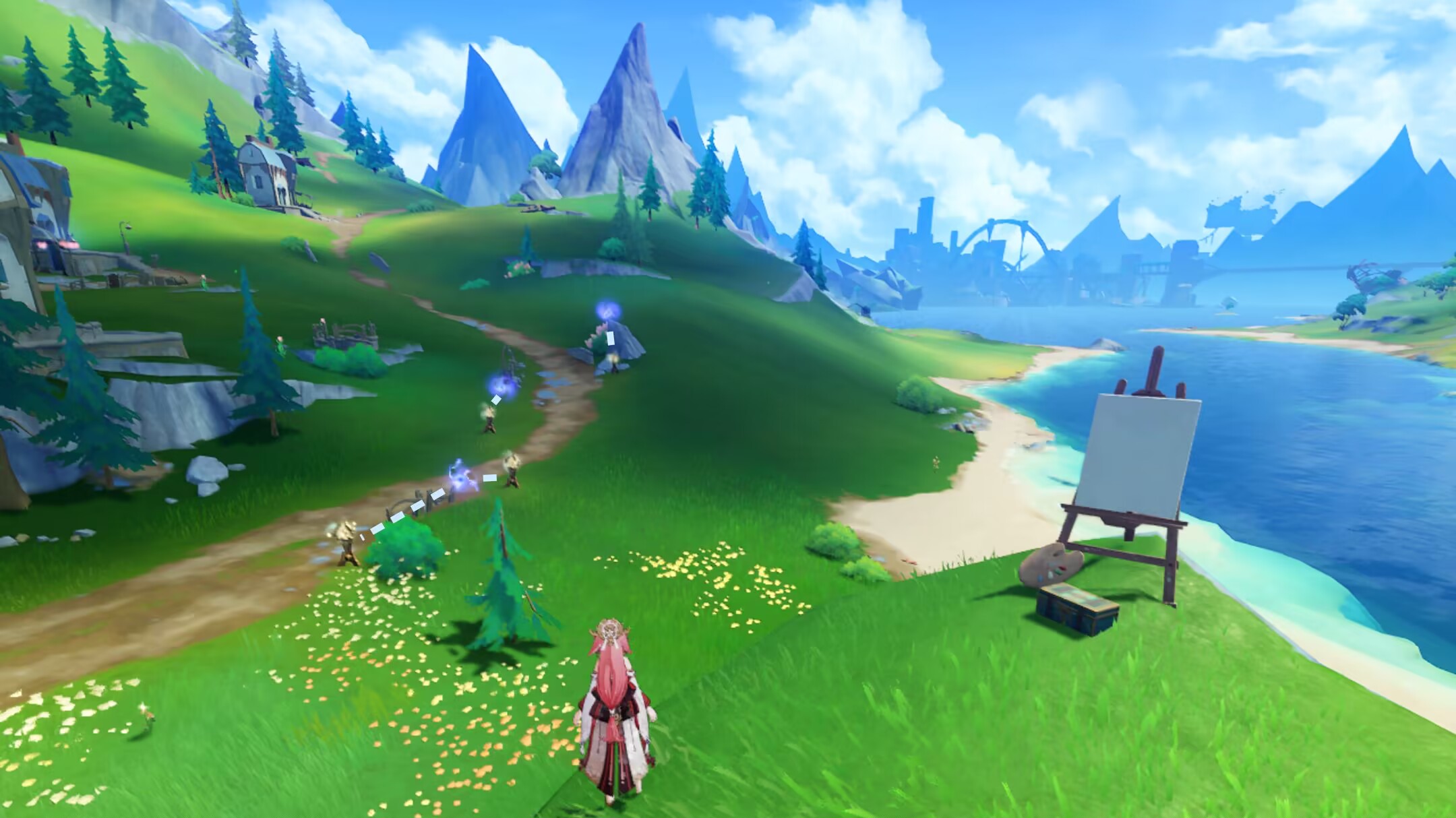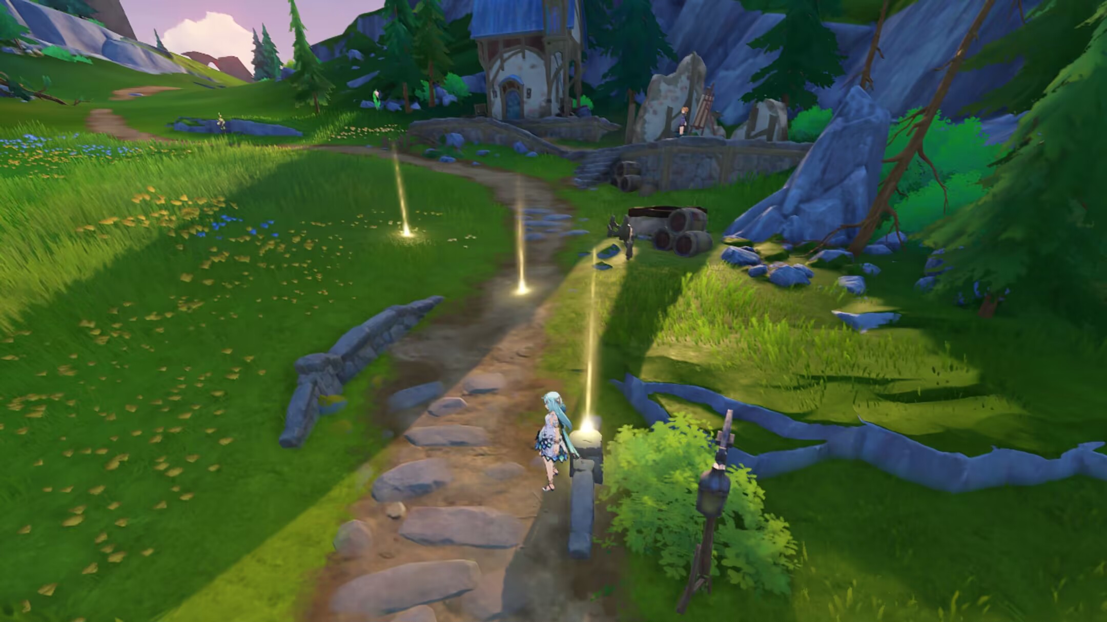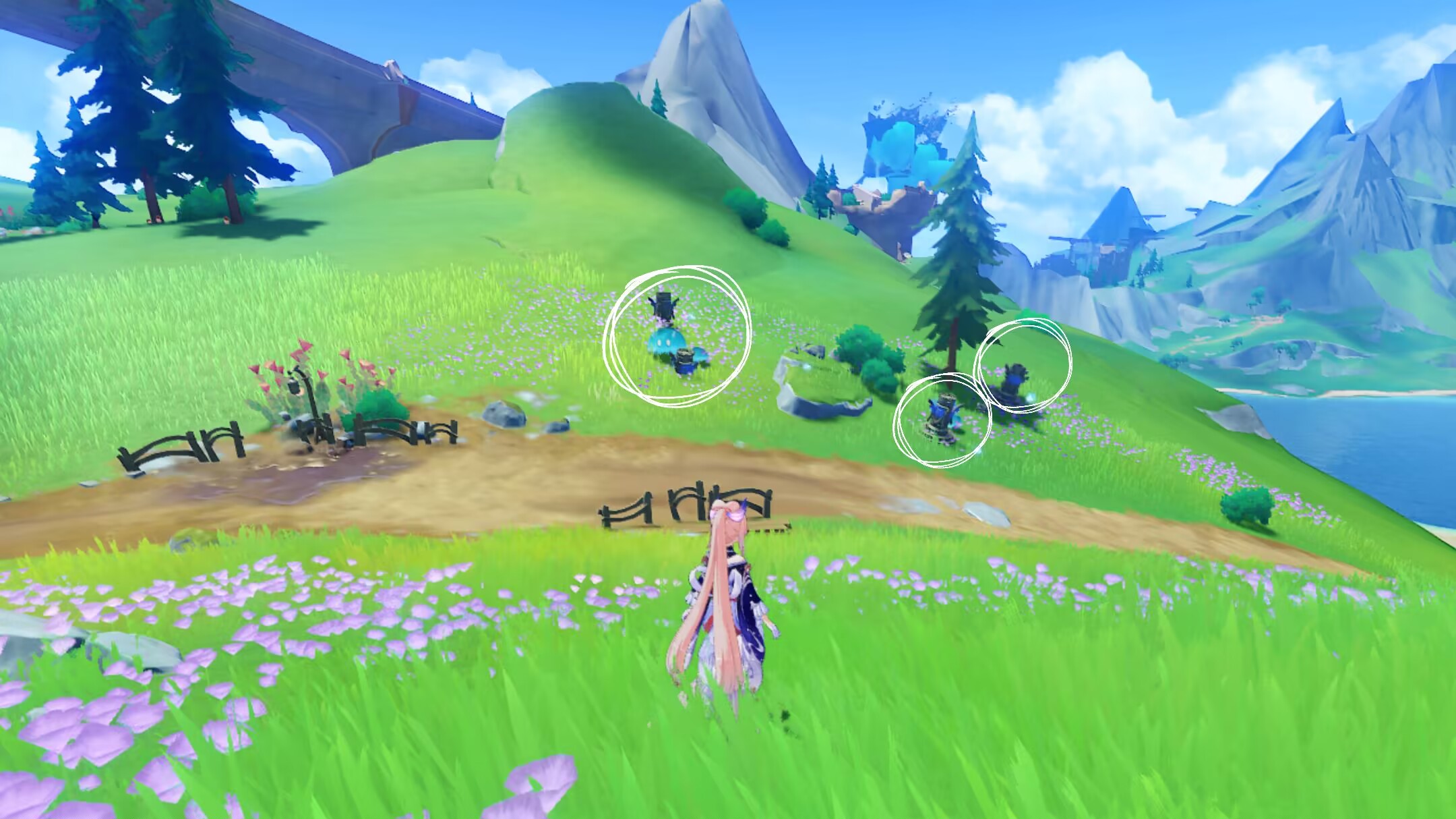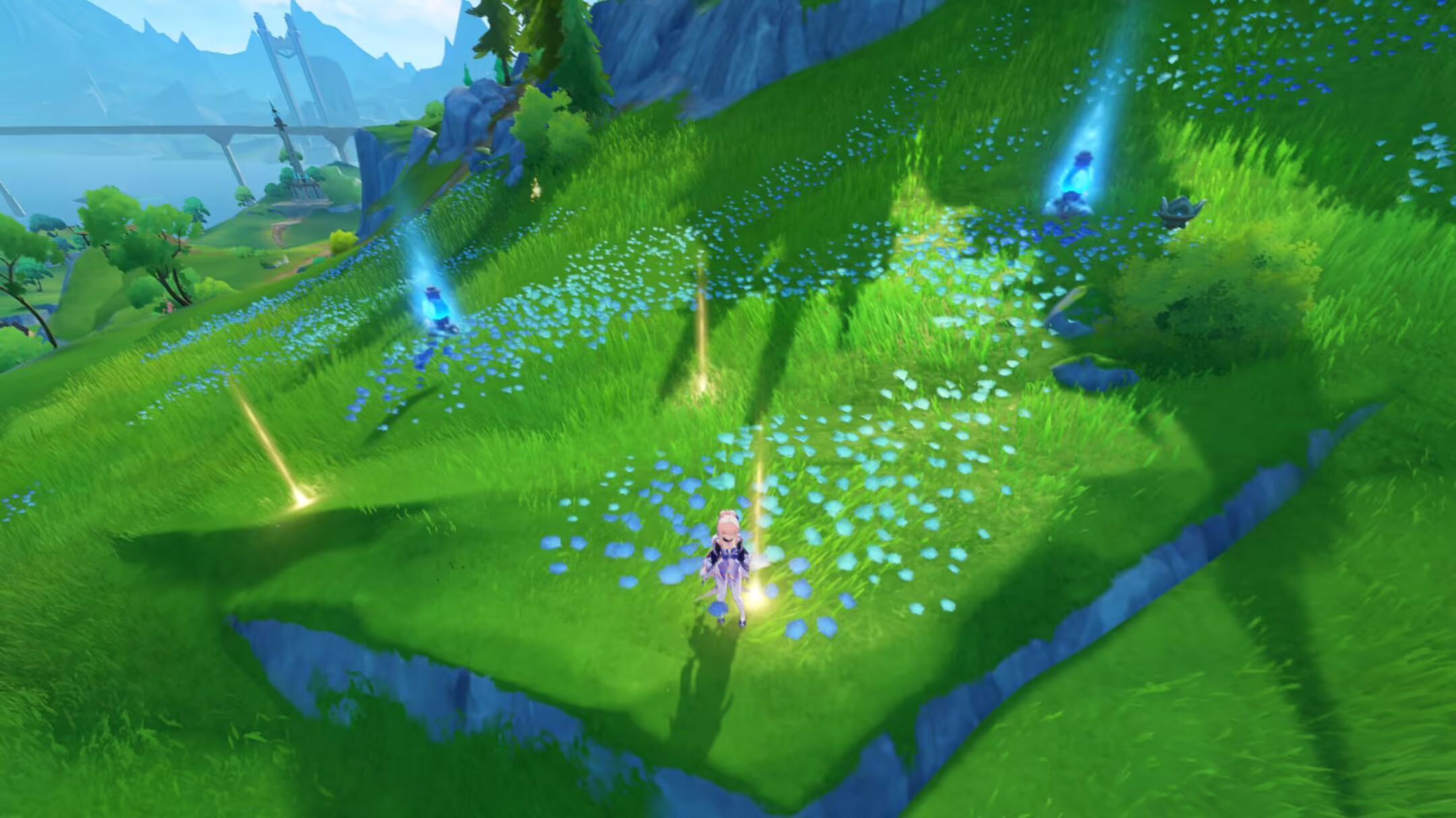 使用(风元素)角色攻击风车,吃完颗粒开启宝箱触发任务
