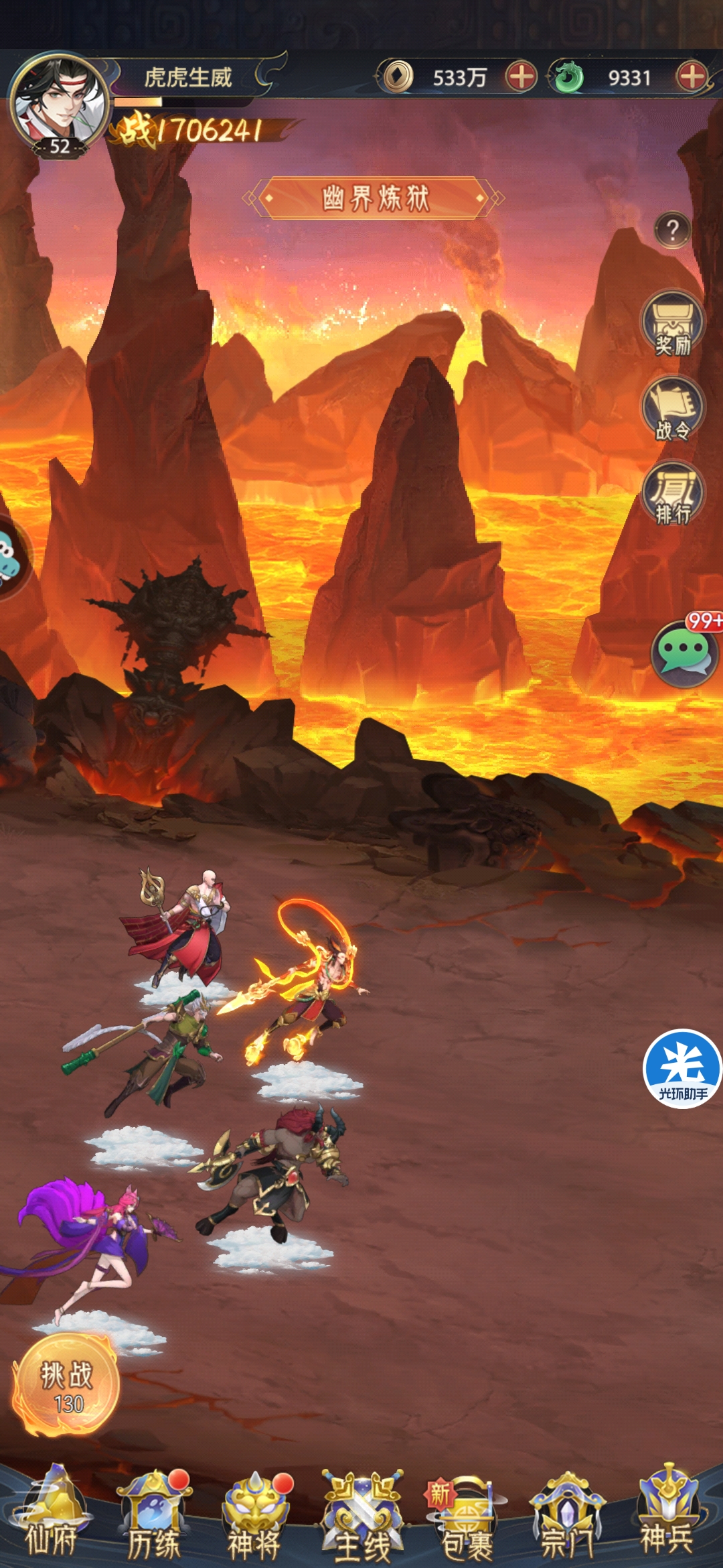 等级目标:主角等级52级,主将最高等级205级,最低等级100级