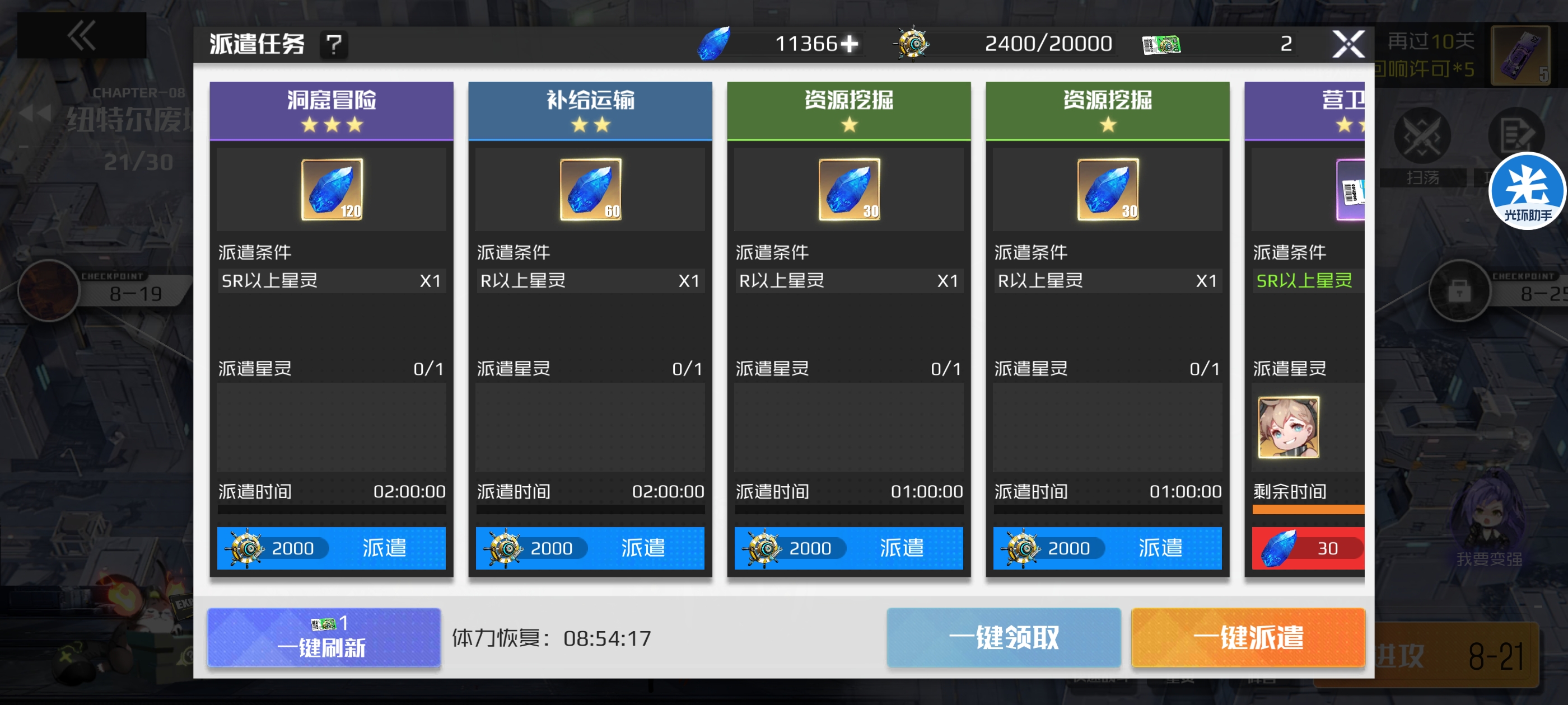 然后免费的刷新完之后,可以把日常任务做完后再刷新,不要免费刷新完就直接用钻石刷新。