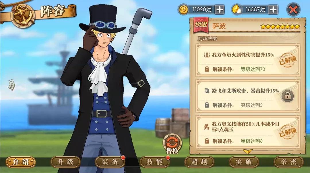 出身贵族但向往自由,幼时与路飞、艾斯相识并结拜为兄弟。在首次出海时遭到天龙人的袭击,被革命军首领蒙奇·D·龙(路飞父亲)救下。在龙的教导下,凭借自身的天赋与努力,成为革命军二号人物。在德雷斯罗萨竞技场与路飞重逢,代替路飞出场并赢得比赛,吃下烧烧果实,继承了兄弟艾斯的意志。