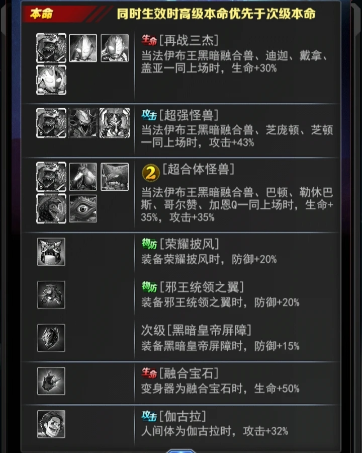 解析:这个触发条件是有限的,只有收到怪兽或与阵容才可以增加33%的命中只有一回合,所以这个角色我不建议玩,命中流,因为这个角色只有这一个加命中的方法,而且这个价的话还是有限制的。所以建议玩暴击流,然后呢,就是后半段攻击时床上有怪兽或者宇宙,人可以增加自身的伤害,这个应该是叠加不起来了,但是这55%是常驻的对怪兽和宇宙人有很好的针对性