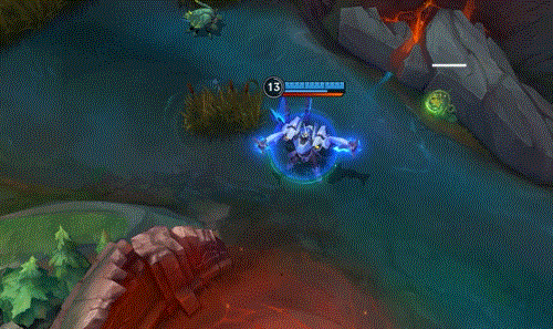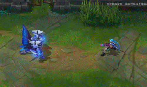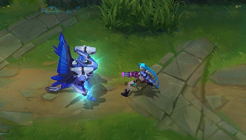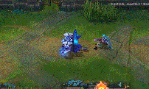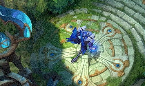 打击时,加里奥会对目标所在区域造成额外的范围伤害,并用正六边形的蜂巢网络指示器标明打击范围。打击完成后空中会伴随着能量条的消散特效。