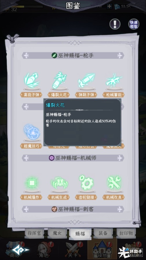 2. 为了更稳定的渡过前期的疲乏期和提高枪手的对群输出,玩家需要尽早在20级时点出爆裂火花的巫神赐福。该赐福对枪手学派的所有魔女都是质变。