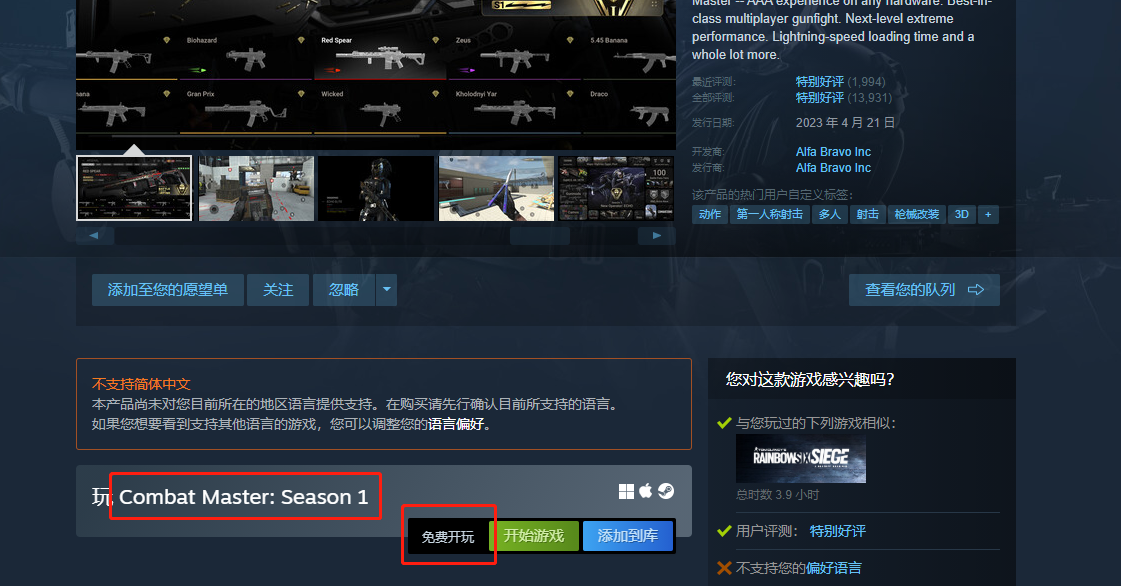 在这篇文章开始之前,想必也有很多小伙伴听说了在电脑(STEAM)上开放了一款名为《Combat Master:Season 1》的“免费”射击游戏,画质很好,据说是免费的“COD16”平替。