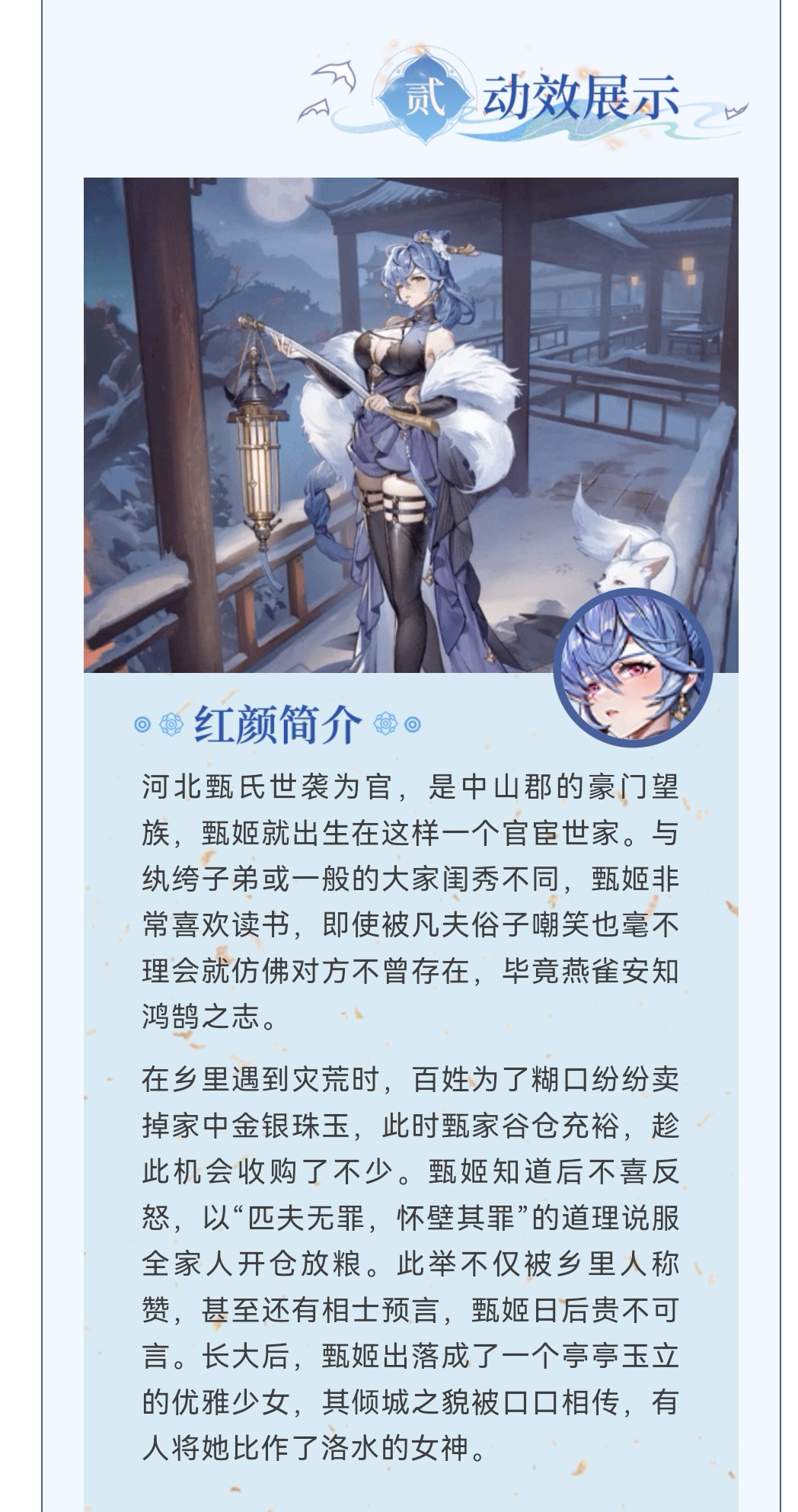 战斗开始时甄姬立即释放技能,冻结敌方3个红颜,令其1回合无法释放技能,且无法获得红颜能量