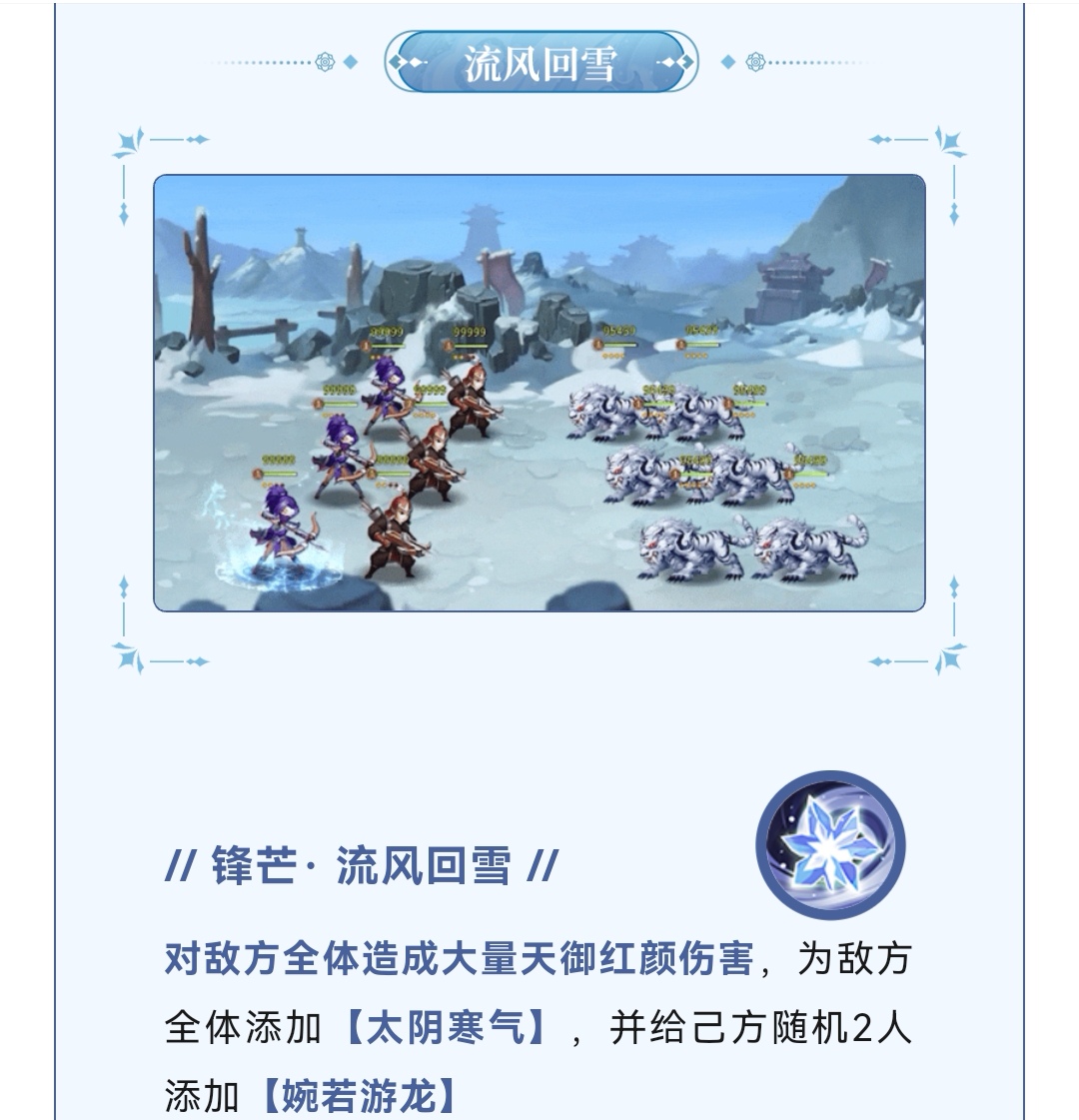 太阴寒气(携带者每回合受到伤害时,将根据其携带的“寒冷”层数,提升该次伤害;每次受到异常状态类效果时额外对周围随机2人附加产生一定比例此次伤害;