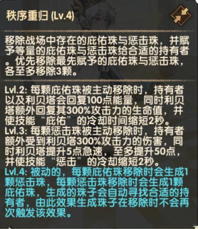 移除战场中存在的庇佑珠与惩击珠,并赋予等量的庇护珠与惩击珠给合适的持有者。