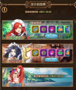 4、活动期间开启玩法具体如下:①女仆的效率:活动期间每3天解锁一张全新地图,完成后可获得通关奖励。