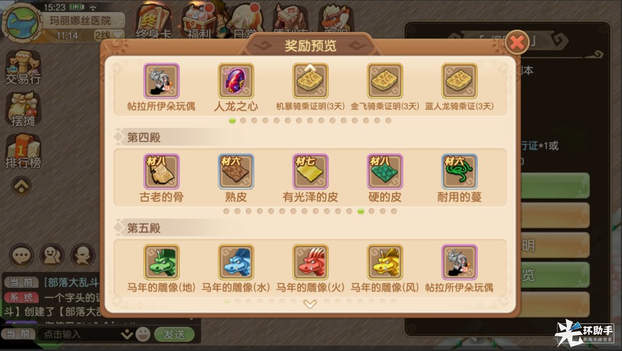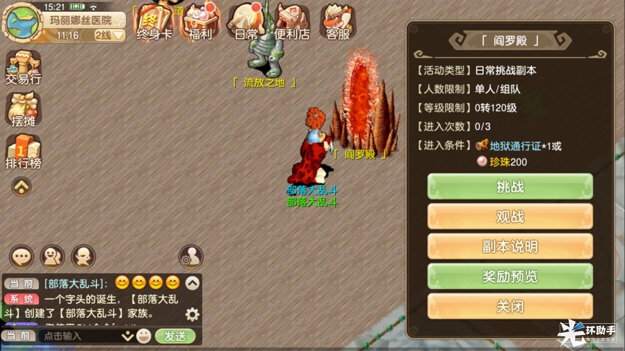 阎罗殿攻略 - 专爆极品勤勉搬运的后辈君发布于 2023-08-23关注阎罗殿:单人或多人组队进入等级:5转140级进入条件:地狱通行证*1 或 珍珠*200进入次数:每天3次挑战层数:总共6层副本限制:(可在NPC处查看副本说明)A. 死亡、逃跑传送至渔村医院B. 怪物数量根据队伍人数而定,人数越多,难度越大C. 按角色独立掉落(建议组队进行通关,奖励更加丰厚)副本入口:渔村医院内(坐标:13.15)获得奖励:机爆玩偶,马年雕像,各类骑证,合成首饰,打造材料等(NPC处查看奖励预览)