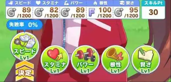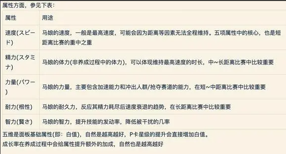 从图中我们可以看到五项属性所分别引导的关于马娘组成的数值。并且明显的可以看出根据赛距长短,需要的属性有所不同如何提升数值呢?除了最普遍的技能卡提升,训练提升外,还有基因继承,自身开花以及觉醒等游戏中种种提升数值的手段训练提升除了主属性提升外,也会提升部分副属性以及增加技能点(pt)
