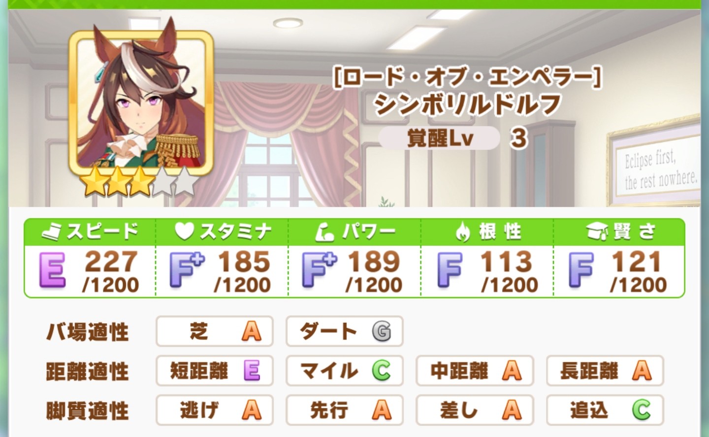 ①优秀:图标为双圈,表示目前马娘属性远高于需求属性