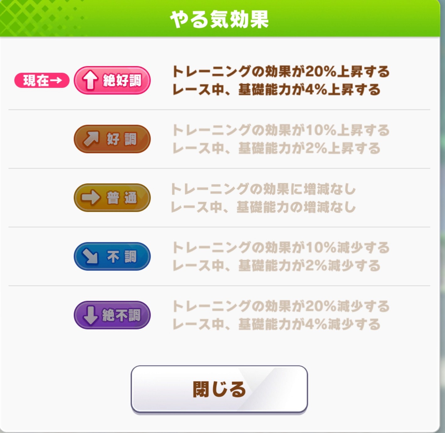 不同的心情状态会对训练会有不同的加成,保持心情为绝好是很重要的。