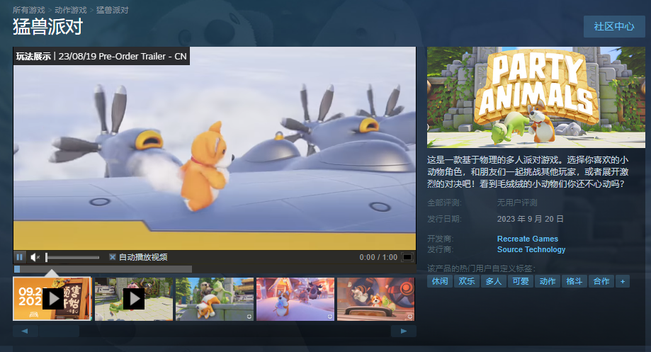 1.点击前往Steam《猛兽派对》页面,也可以打开steam商店搜索“猛兽派对”找到