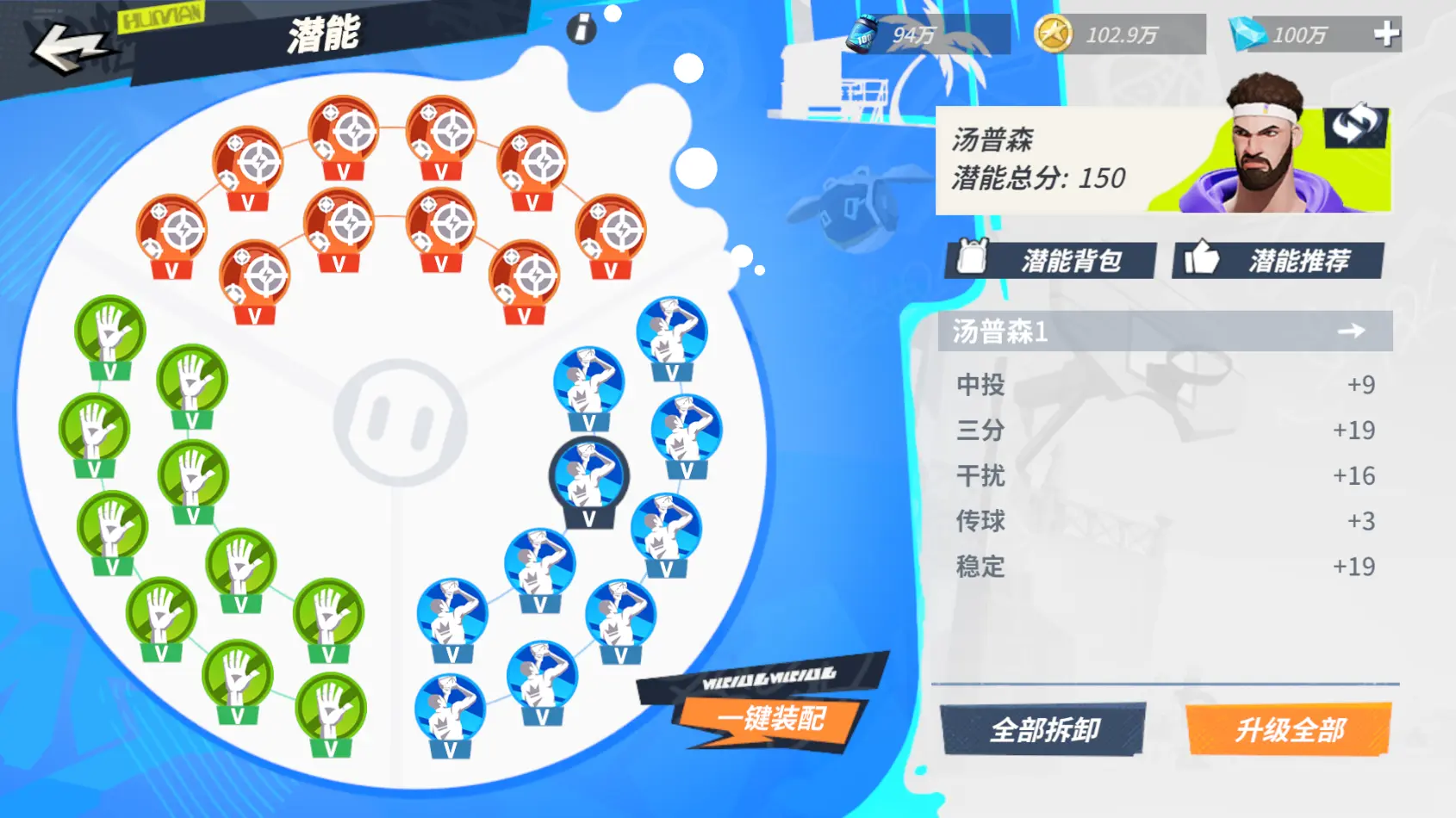 中投远射流:火力覆盖、游击战术、后发制人针对汤普森核心得分手的定位,各位街球手在选择潜能时,尽可能将数值提升集中在【中投】及【三分】的得分能力上。