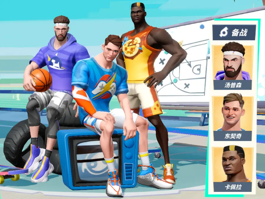 搭配思路:C+PG+SG是一个比较标准的街球组合,除了PG需要更多得传球组织进攻之外,C和SG会根据所选球员技能功能的不同,调整得分核心。