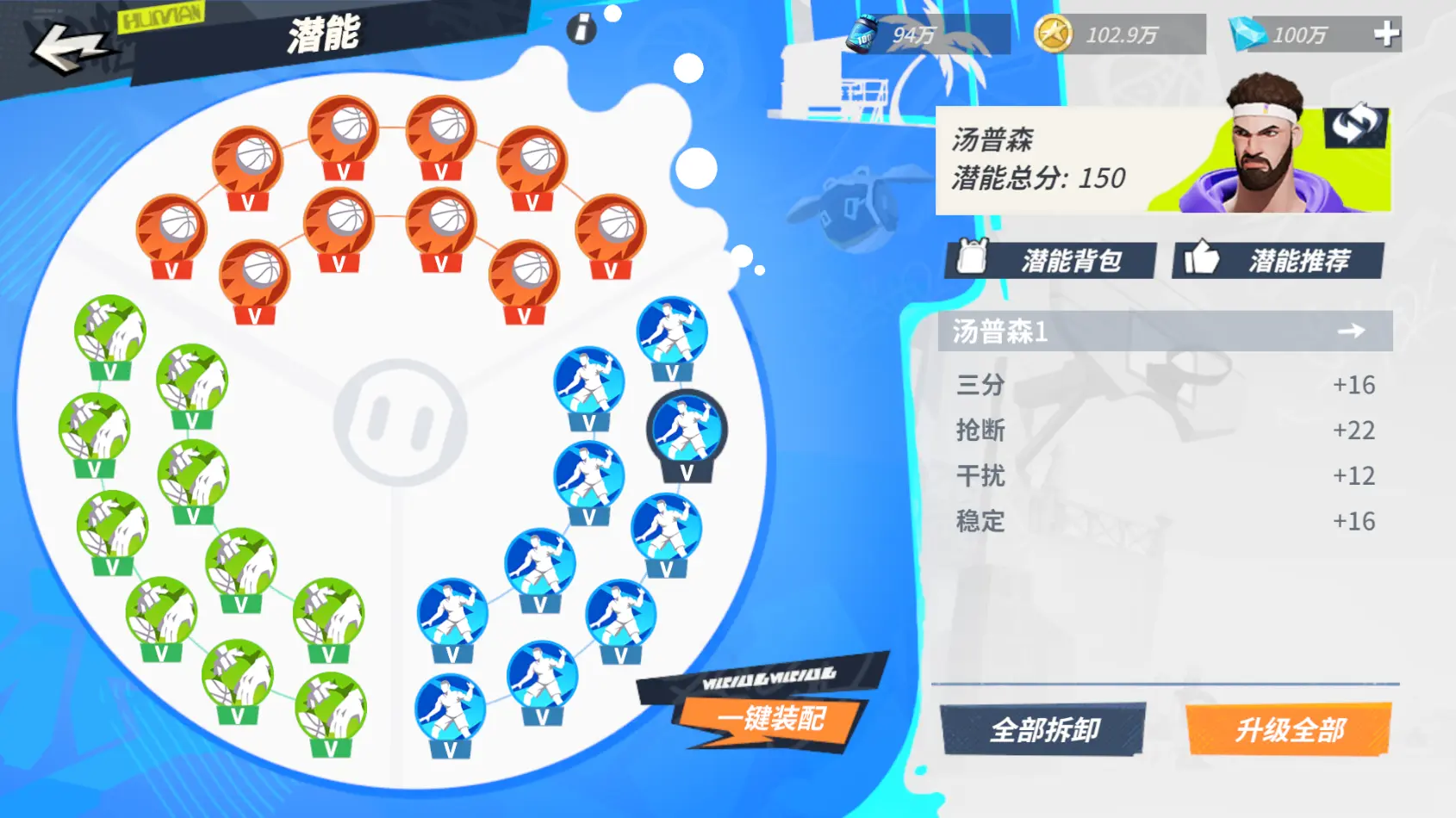 针对防守达人的定位,各位街球手在选择潜能时,尽量将数值增加集中在【抢断】【干扰】以及【稳定】等防守能力上,可以适当增加得分能力。