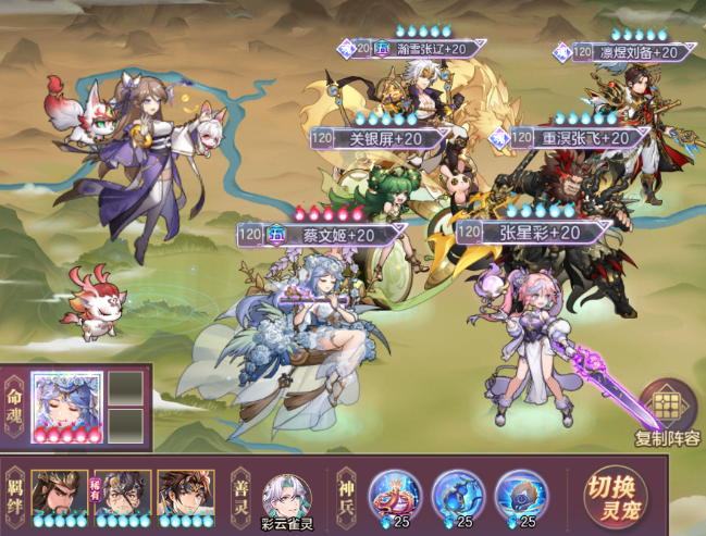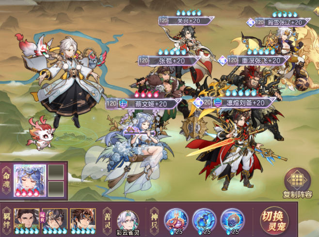 【成型阵容】:魂张辽、魂刘备、魂张飞、专武张星彩、专武关银屏、蔡文姬