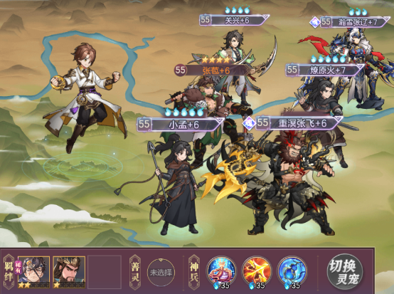【前期开局】:燎原火、小孟、关兴、张苞、魂张辽(乐进羁绊)、魂刘备(赵云羁绊)或孙鲁育
