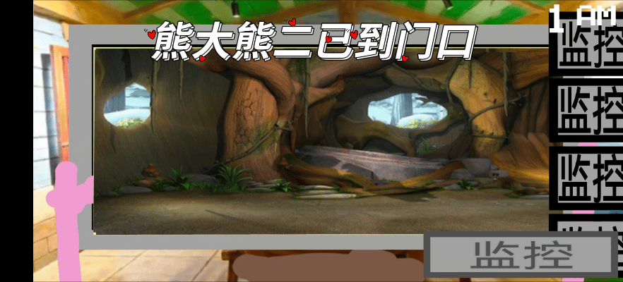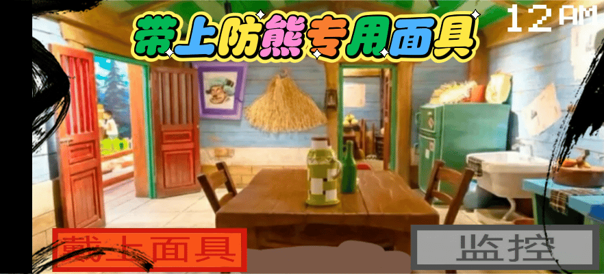 🎮游戏刚开始一切都正常,在这段时间可以练习下自己的手速,快速的切换面具以及监控画面。熊二会先从监控中消失,紧接着熊大也会消失在监控的视野中,这时我们就要赶紧带上面具,熊大会突然出现在门口,带上面具熊大就不回发现我们了。