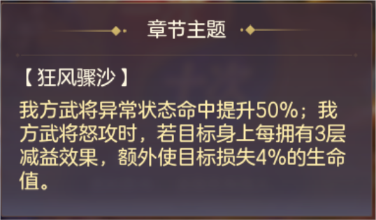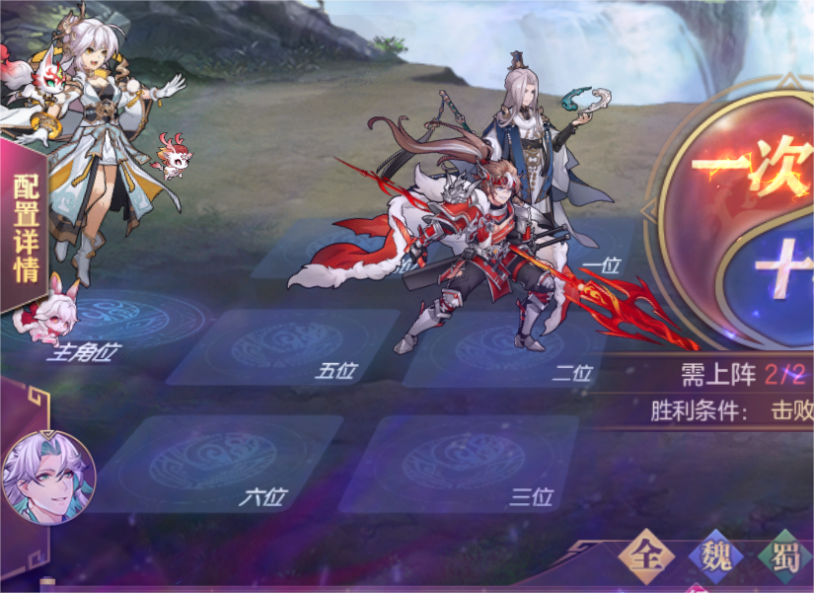探骊寻珠中的BUFF选择普适性较高的BUFF,优先选择斩杀BUFF可以比较有效的降低难度,别的BUFF优先选择全体加成,若没有全体加成则优先前排BUFF,本章较为简单。参考社稷值:1200万(蜃梦左慈默认华佗羁绊、瀚雪张辽默认乐进羁绊、煊明孙策默认孙尚香羁绊,武将有专武的默认带专武)