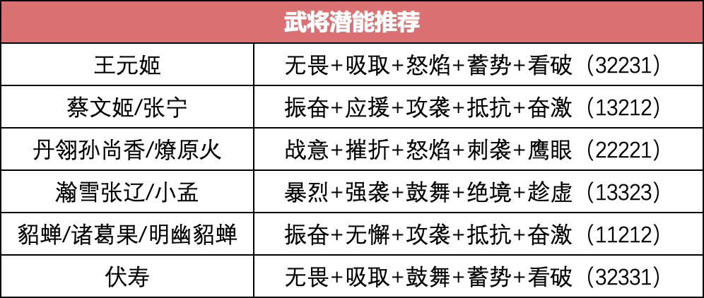 Ps:这里的成型指神将全五火,蔡文姬和诸葛果有专武,没有五火前都可以继续用燎原火和小孟过渡。