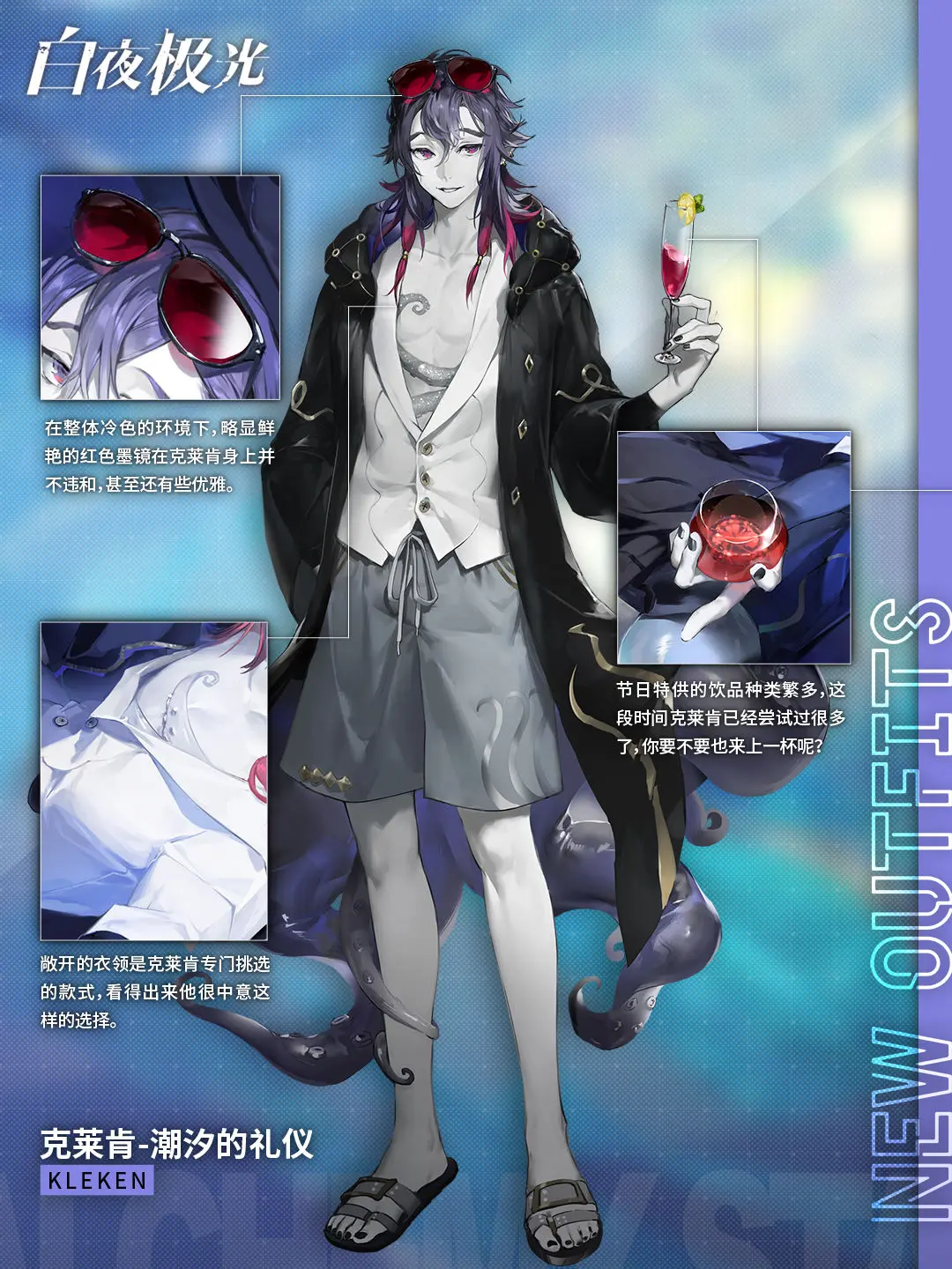 ✦时装档案✦ 艾希·鎏金秘影 & 克莱肯·潮汐的礼仪白喵岚岚发布于 2023-08-28关注在热闹的沙滩活动、轻澜的海浪和明媚的阳光中,光灵们纷纷进入了度假模式。但不同的是,有的人在快乐购物,有的人在默默赚钱,有的人却在烈日下四处奔走……▌艾希·鎏金秘影「我送你的礼物要全部放到巨像上,我送给你的甜品也要全部吃完!」 ▌克莱肯·潮汐的礼仪「《勇者送货》的故事也很有意思,不是吗?」