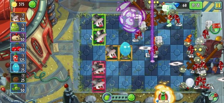 这关的进化路线是 玉米投手-激光豆-闪电芦苇-星星果-火龙草。玉米阶段没什么好说的,激光豆时会有一个精英路障,用能量豆打死就行了。另外,最好在这个阶段就把电磁盾打死,否则,到了闪电芦苇会很麻烦。闪电芦苇也没什么好说的。星星果时就是要苟着,到了火龙草,巨人射激光,你就用能量豆就行了。