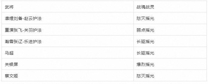 武将:凛煜刘备-赵云护法、重溟张飞-关羽护法、瀚雪张辽-乐进护法、马超(命魂觉醒+专属幻武)、关银屏(专属幻武)、蔡文姬(命魂觉醒+专属幻武)