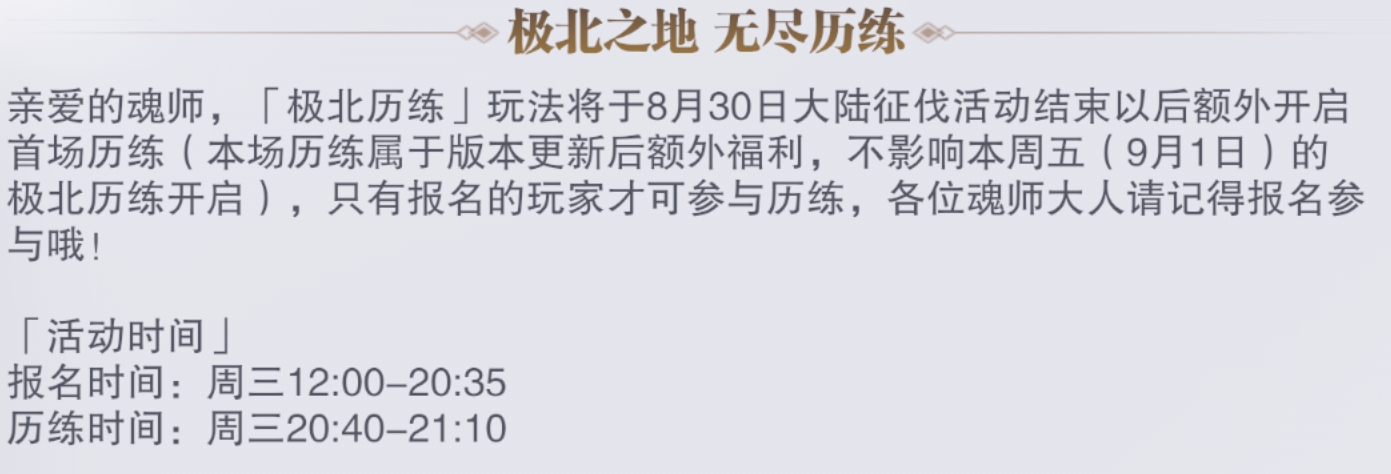 开服天数大于等于30天的服务器将开启极北历练玩法(替代原周五的宗门宴会和守卫宗门活动)