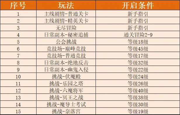 5、日常副本中“幽鬼入侵”每10级解锁下一难度,“绝地反击”和“秘密追捕”每5级解锁下一难度,通关当前级别最高难度后,记得每天扫荡,积累资源提升魔导士战力。