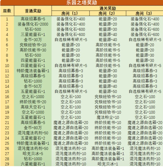 太多了!忍不住留下财迷的口水~完整乐园之塔奖励详情表见下方: