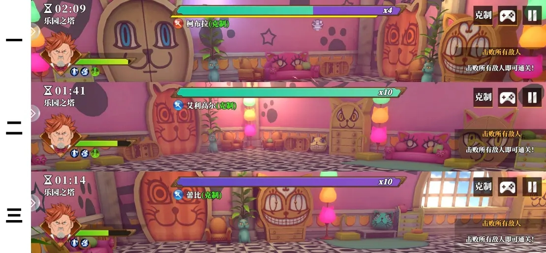 秘籍:可先集中击败一名敌人,选用范围性群体攻击的角色更易通关!例如卡娜。