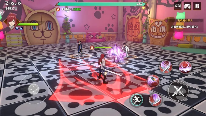 秘籍:选用强力单体攻击角色更易通关!例如纳兹,注意躲避首领技能,首领技能CD期近战攻击。