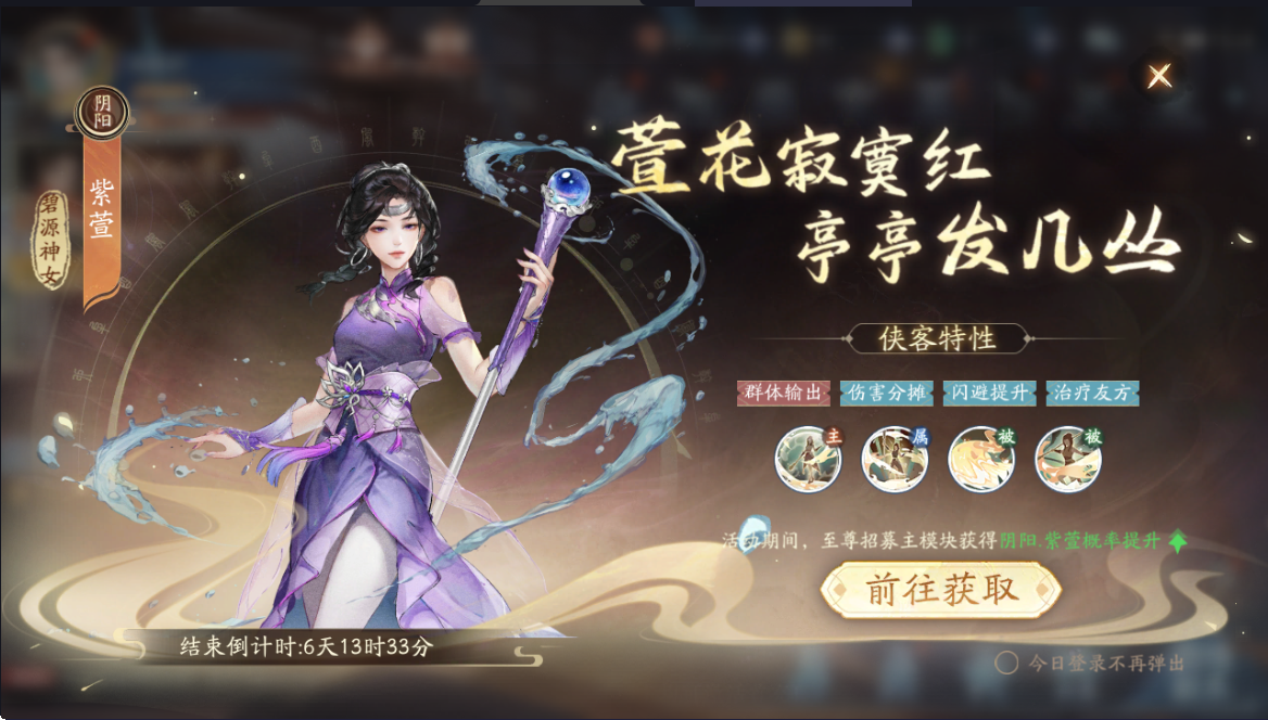 至尊召唤活动即将开启,阴阳超尘侠客阴阳·紫萱同步上线!