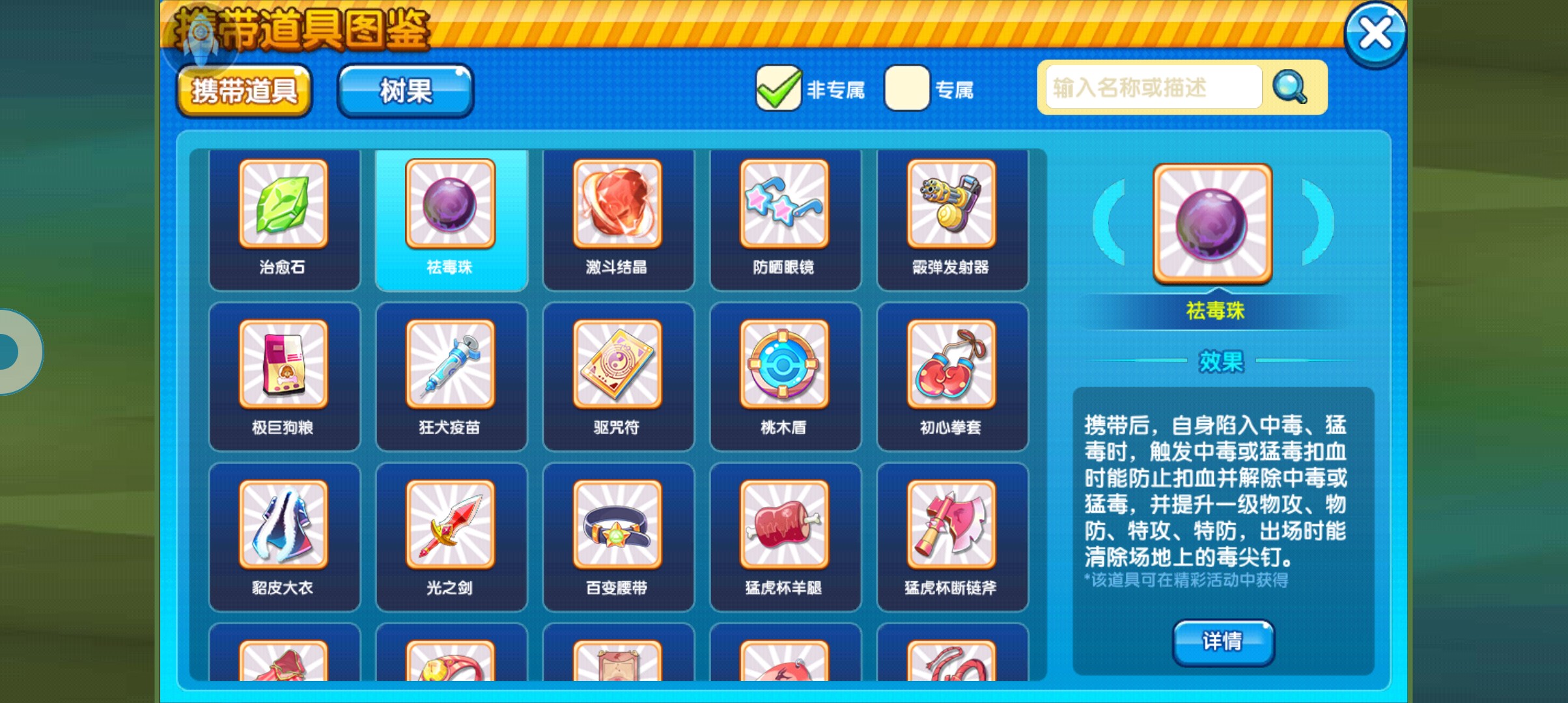 最后推荐一下道具,由于当前版本超坏星众多,以及猛毒素非常的泛滥所以在道具方面我建议可以考虑用祛毒珠