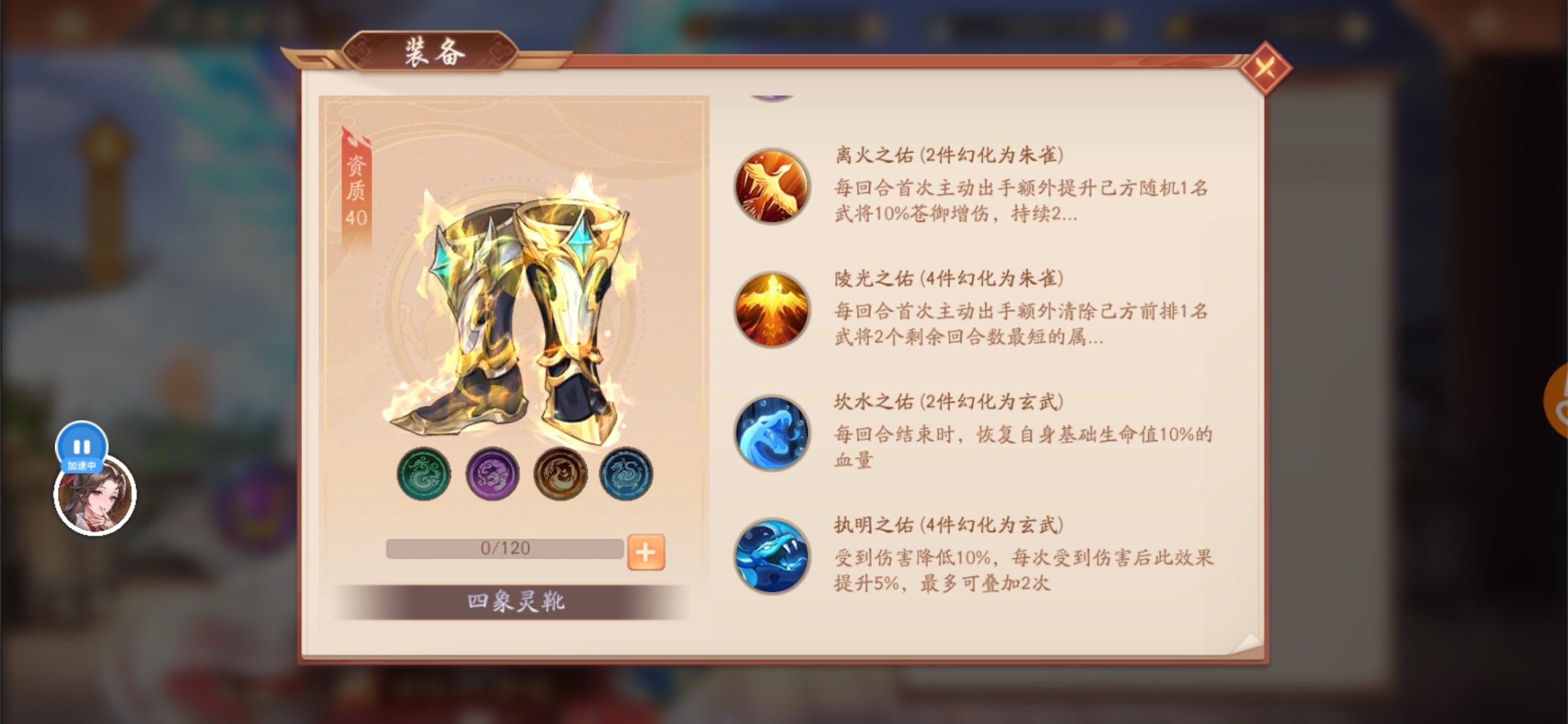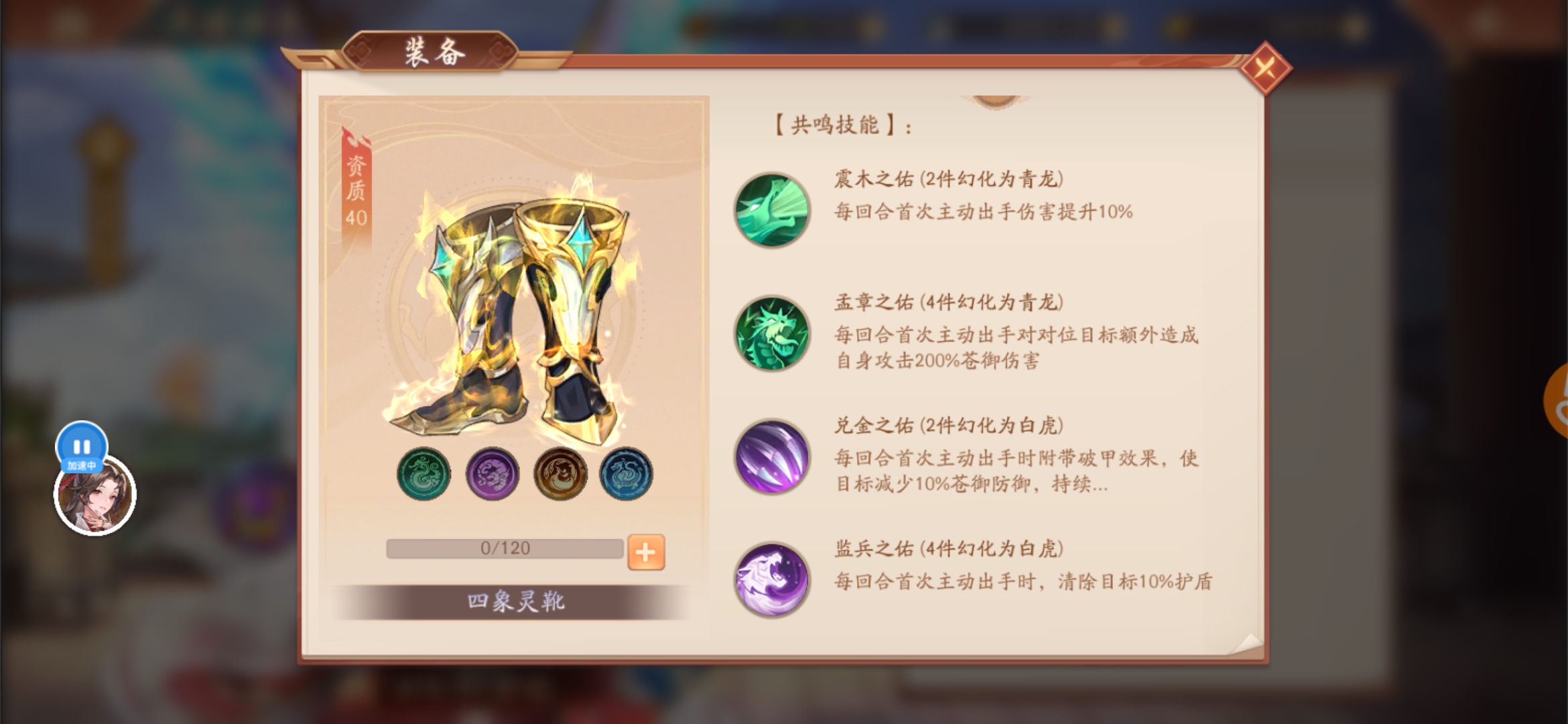 青龙白虎朱雀玄武各一套幻化,阵营效果加强200%,理想情况下,青龙输出,白虎副c,朱雀玄武辅助,四套,后续两套选青龙/白虎加输出,选朱雀玄武加存活,最佳为两青龙一白虎一朱雀两玄武
