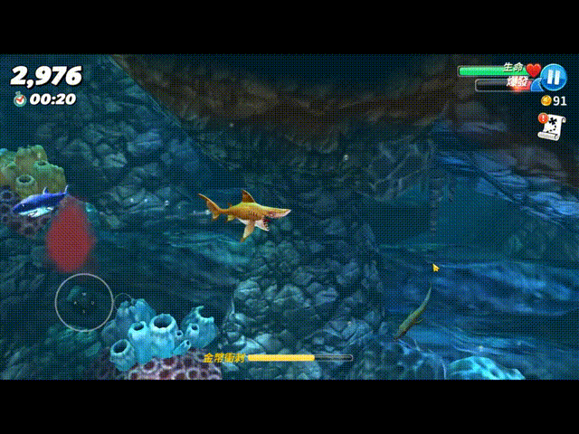 前面我们一直扮演人类,现在我们就来扮演一次鲨鱼看看,欢迎来到饥饿鲨的世界!