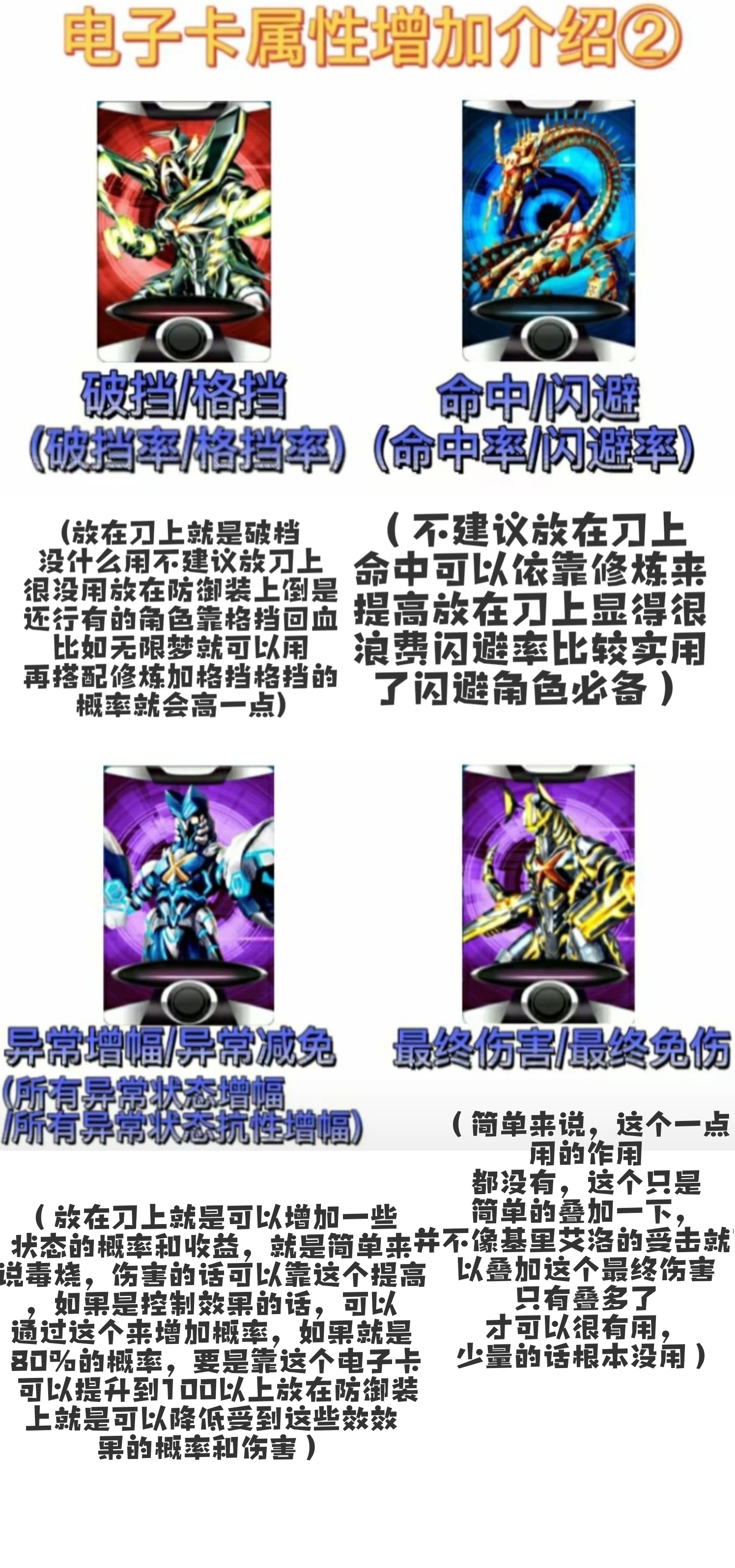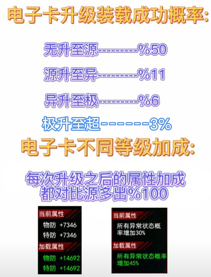 2.闪避电子卡,适用于闪避角色,同修炼保持一致提高闪避几率以及闪避反击能力